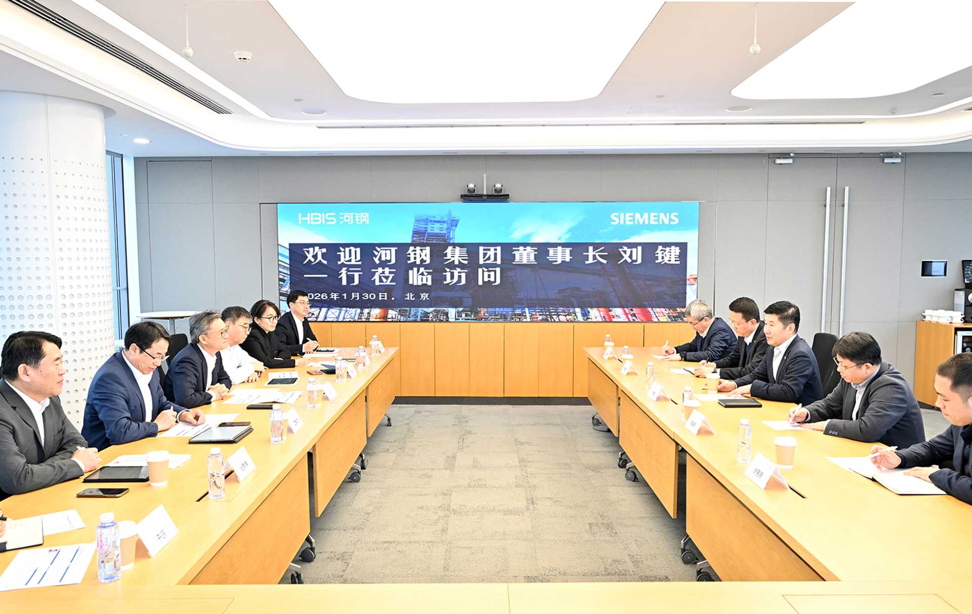 1月30日,集團黨委書記、董事長劉鍵與西門子全球執行副總裁、西門子大中華區總裁兼首席執行官肖松在北京座談交流,深化戰略互信、共謀未來合作,攜手推動鋼鐵行業高端化、智能化、綠色化發展。